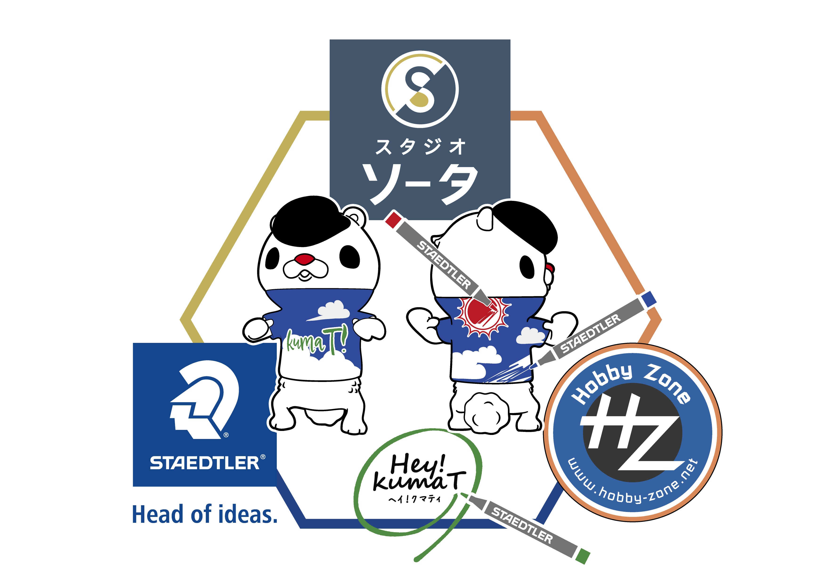 Hey!kumaTのTシャツ部分を7色までのピグメントブラッシュペンで塗ってかっこよく仕上げてください。完成したら、作品とペンを合わせて写真撮影してください。